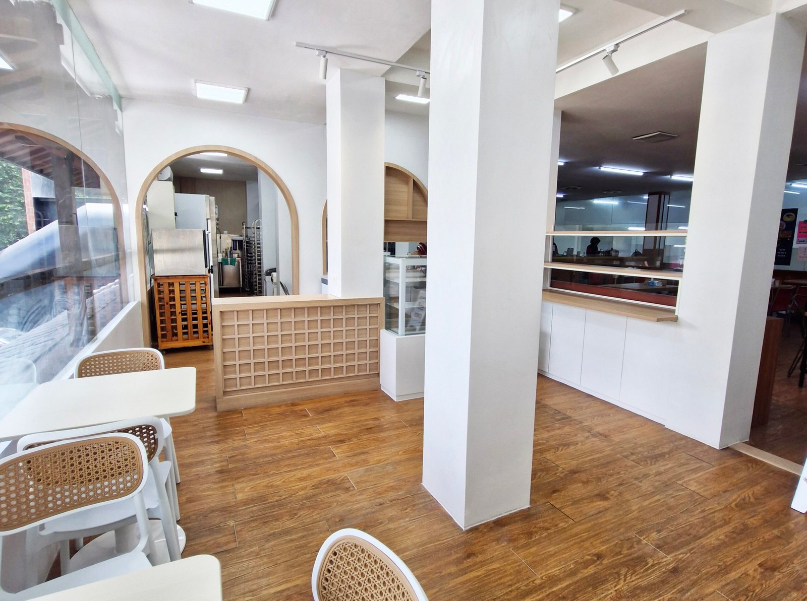 Atmosphere & Vibe The overall impression is nostalgic yet updated. It feels approachable and cozy due to the wood, yet premium and open because of the generous glass framing. It is highly versatile, functioning well for a boutique eatery on the ground floor and complementary services (like clinics or offices) above.